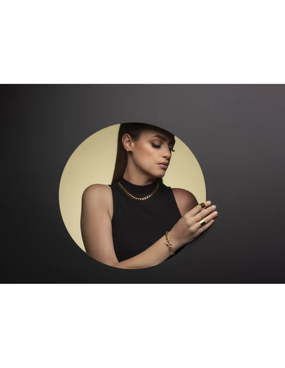 Prosta, minimalistyczna i ponadczasowa bransoleta typu pancerka z pozłacanej stali szlachetnej.