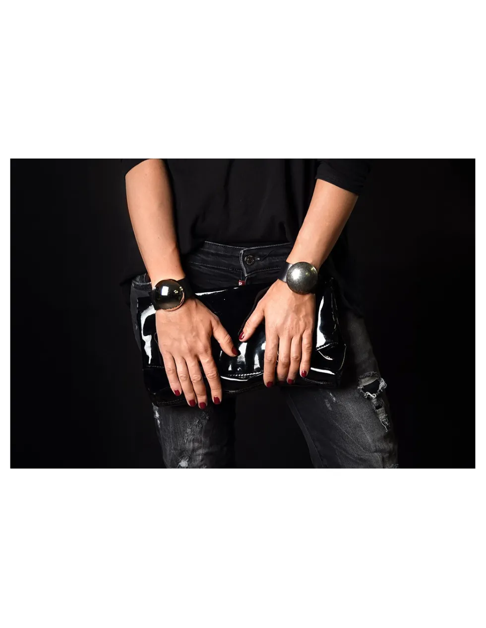 Moora Czarna bransoleta ze skóry oraz stali z błyszczącą kulą* Bransolety
