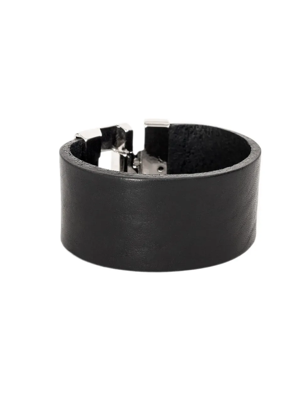 Moora Czarna bransoleta ze skóry oraz stali. Zapięcie klamrowe.* Bransolety