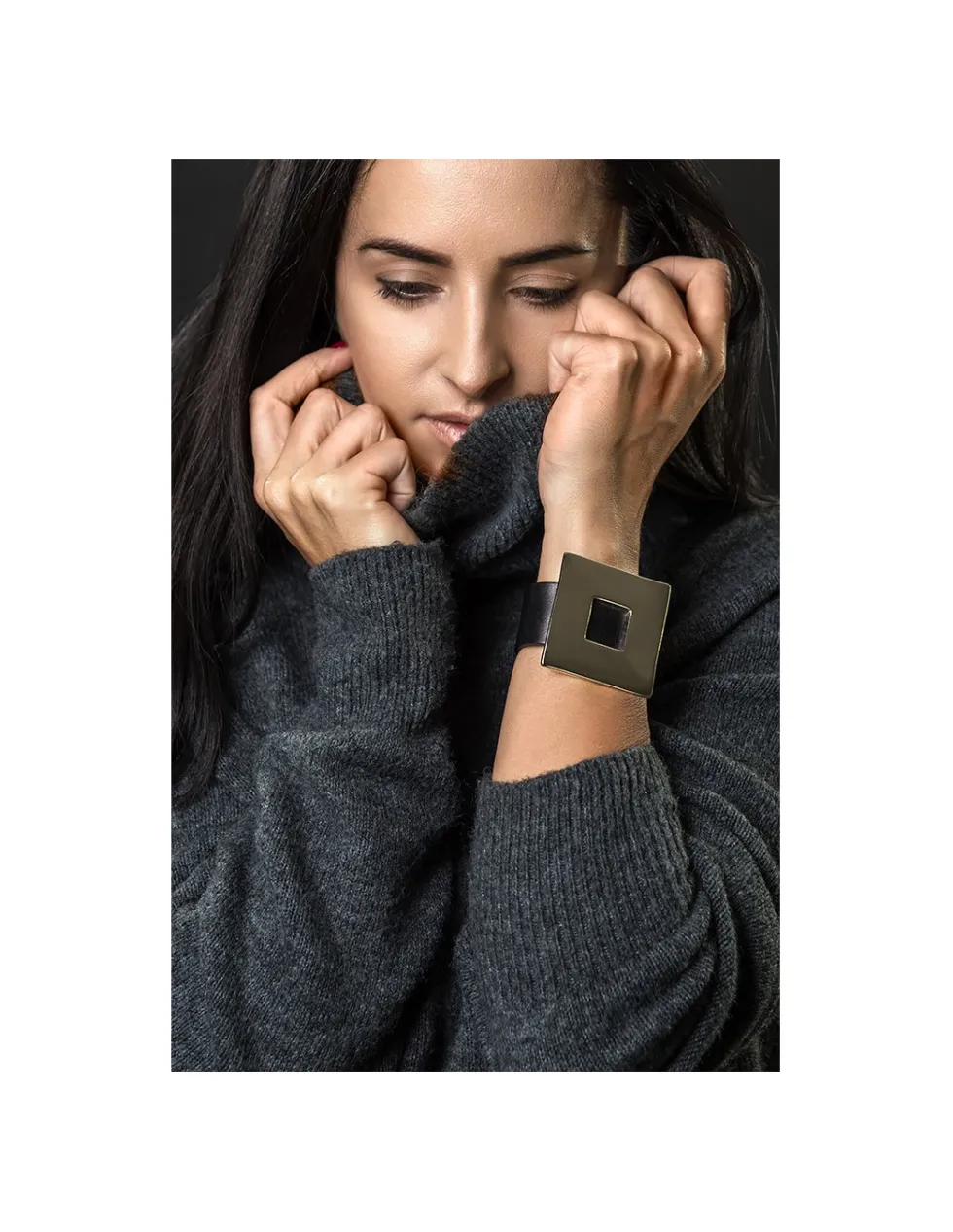 Moora Czarna bransoleta ze skóry z błyszczącym kwadratem* Bransolety