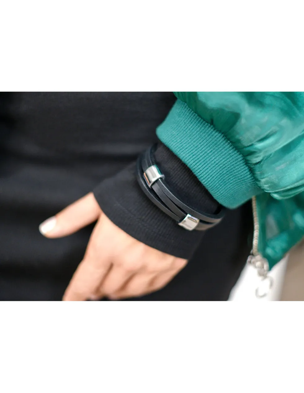 Nowoczesna bransoleta wykonana ze skóry. Produkt stanowi idealne połączenie skóry oraz stali.