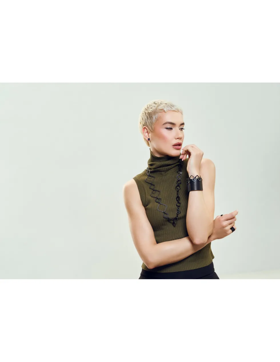 Moora Czarna szeroka bransoleta ze skóry oraz stali. Zapięcie błyszczące.* Bransolety