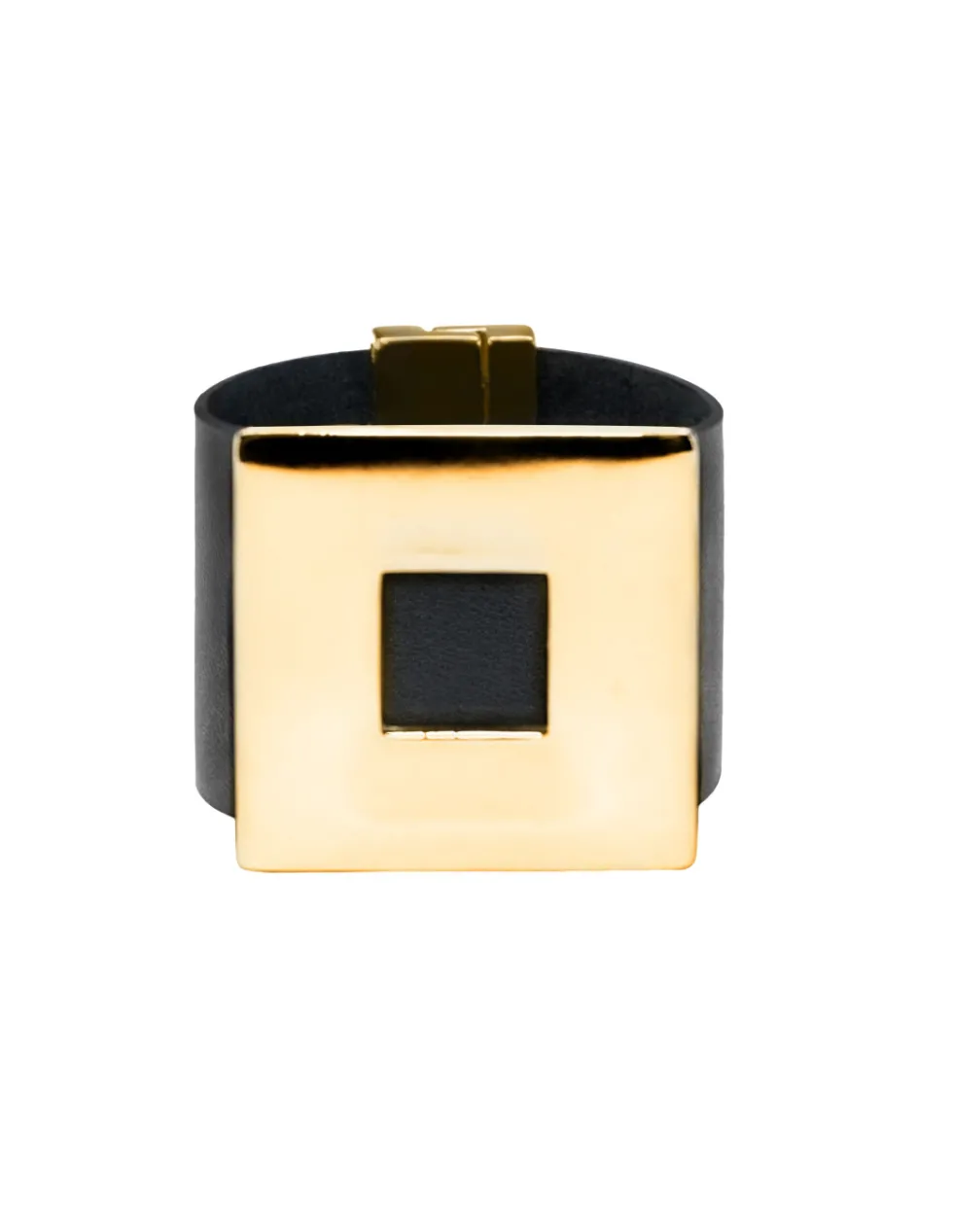 Moora Czarna szeroka bransoleta ze skóry oraz stali ze złotym kwadratem* Bransolety