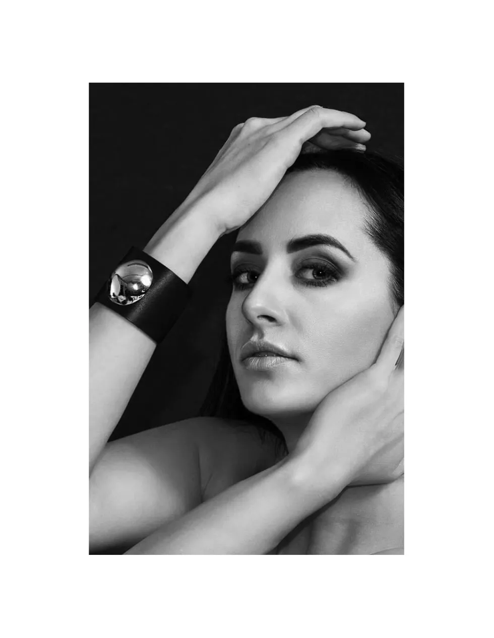 Moora Czarna szeroka bransoleta ze skóry z błyszczącą półkulą* Bransolety