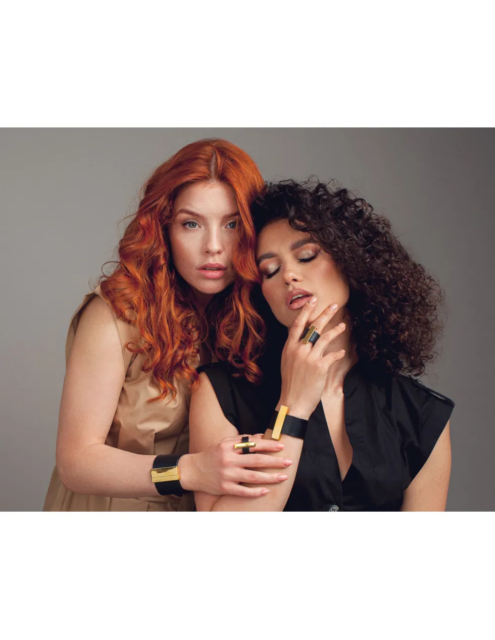 Moora Czarna szeroka bransoleta ze skóry z pozłacanym elementem* Bransolety