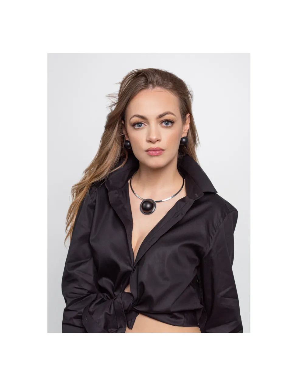 Nowoczesne i ponadczasowe kolczyki półkule z czarnej matowej stali szlachetnej.
