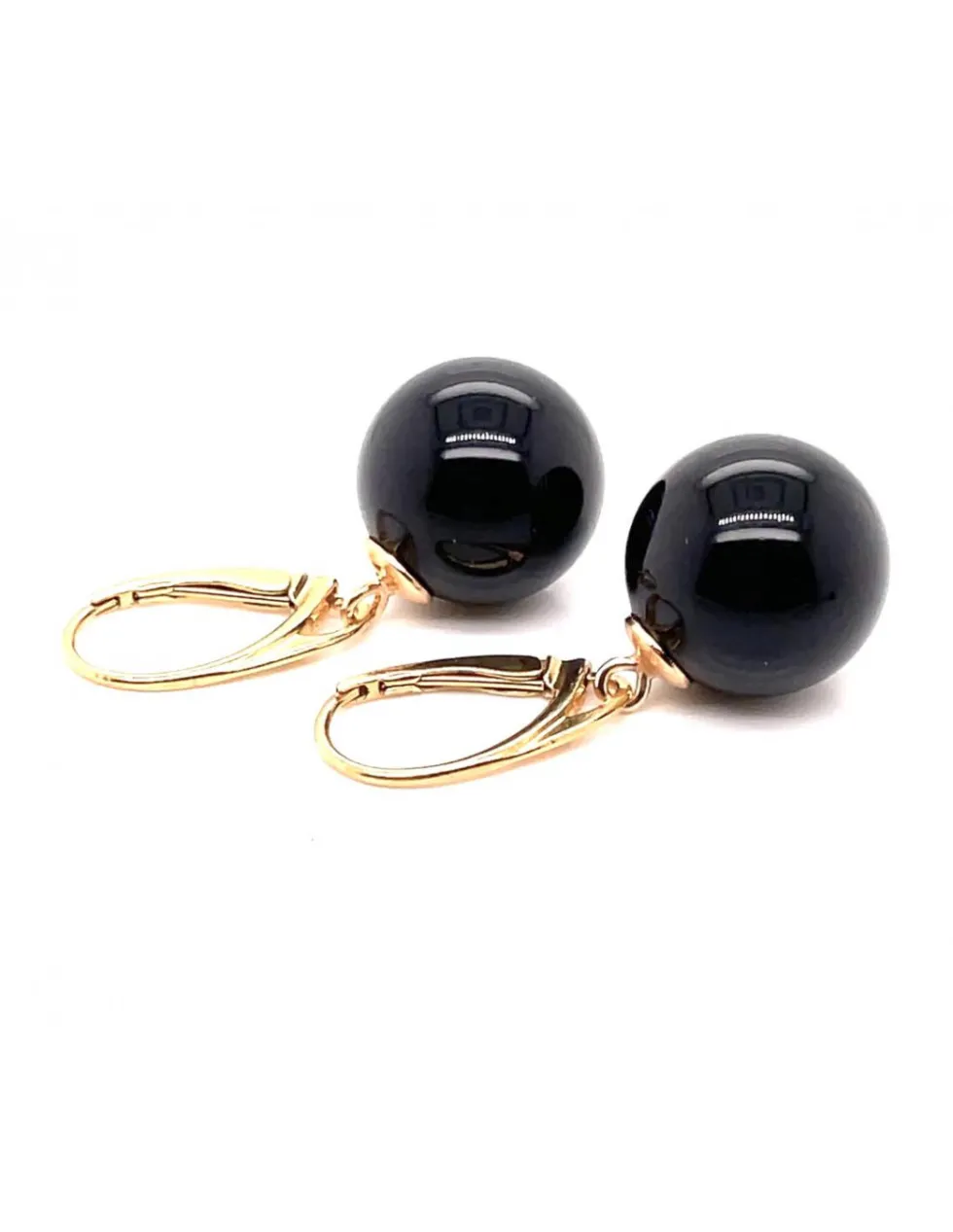 Proste i piękne kolczyki z dużego onyksu o średnicy 14 mm.