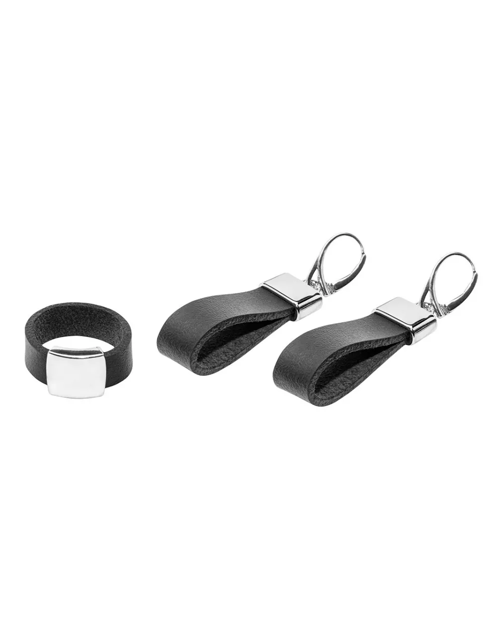 Proste i nowoczesne kolczyki ze skóry oraz srebra pr. 925.