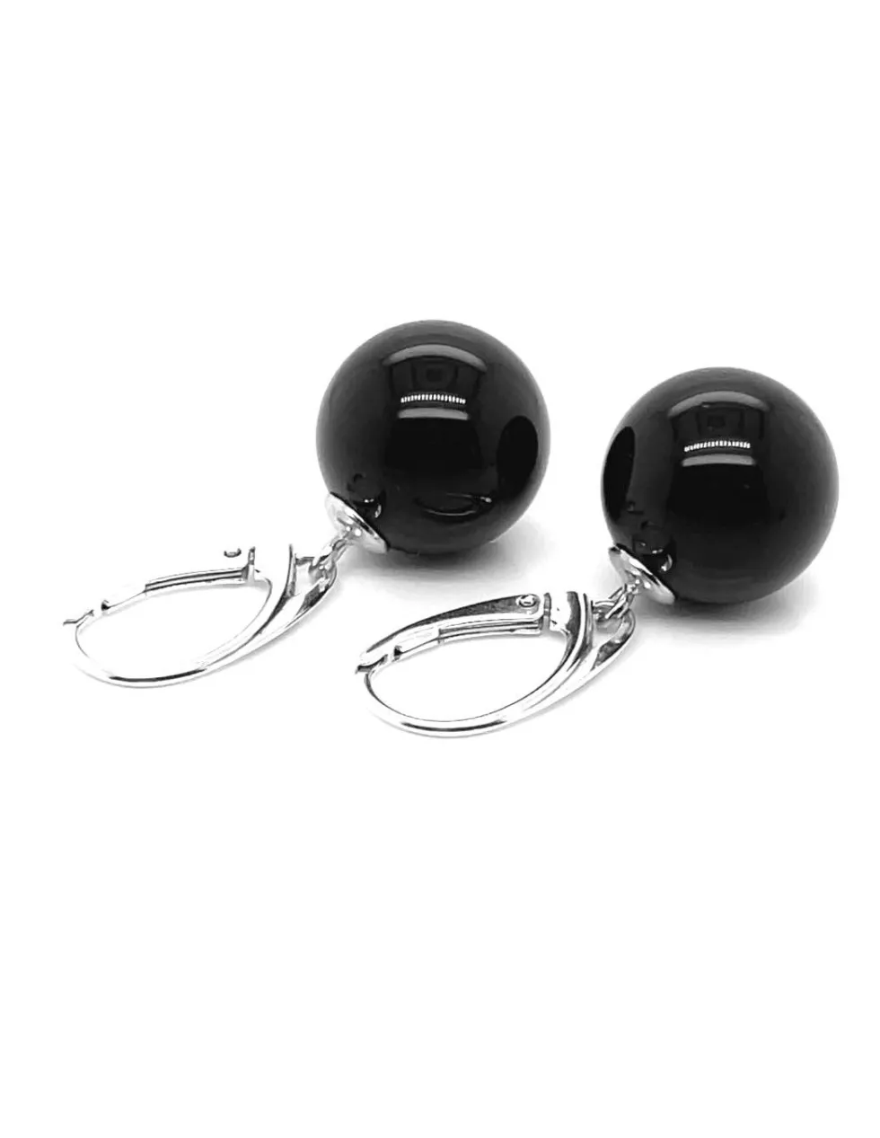 Proste i piękne kolczyki z dużego onyksu o średnicy 14 mm.