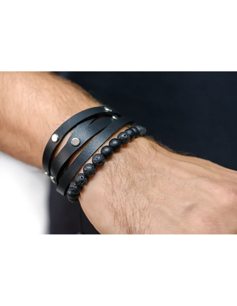 Nowoczesna, prosta i ponadczasowa. Surowa bransoleta z naturalnej czarnej skóry oplatana 2 razy z napami w kolorze stal…