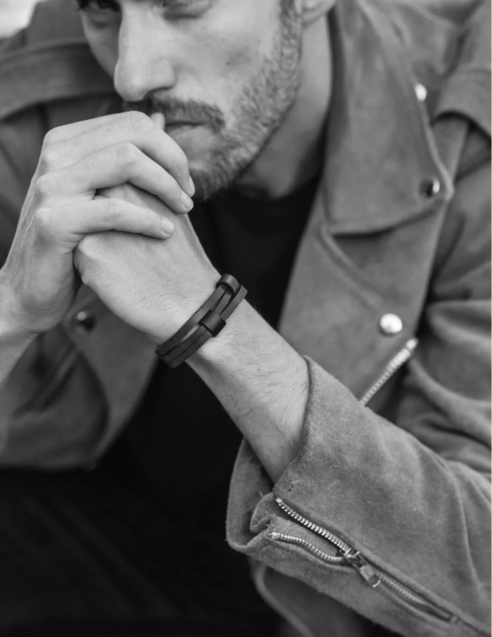 Moora Męska czarna matowa bransoleta ze skóry* Bransoletki