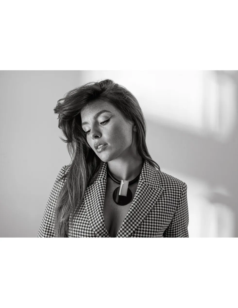 Nowoczesny, prosty i ponadczasowy naszyjnik z miękkiej, ręcznie szytej skóry oraz stali.