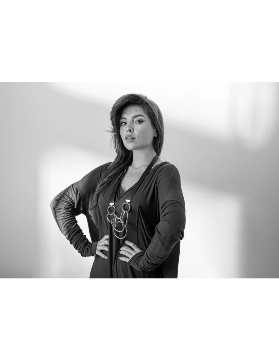 Moora Przyciągaj spojrzenia. Długi naszyjnik SREBRNE KOŁO ze skóry oraz stali szlachetnej.* Naszyjniki