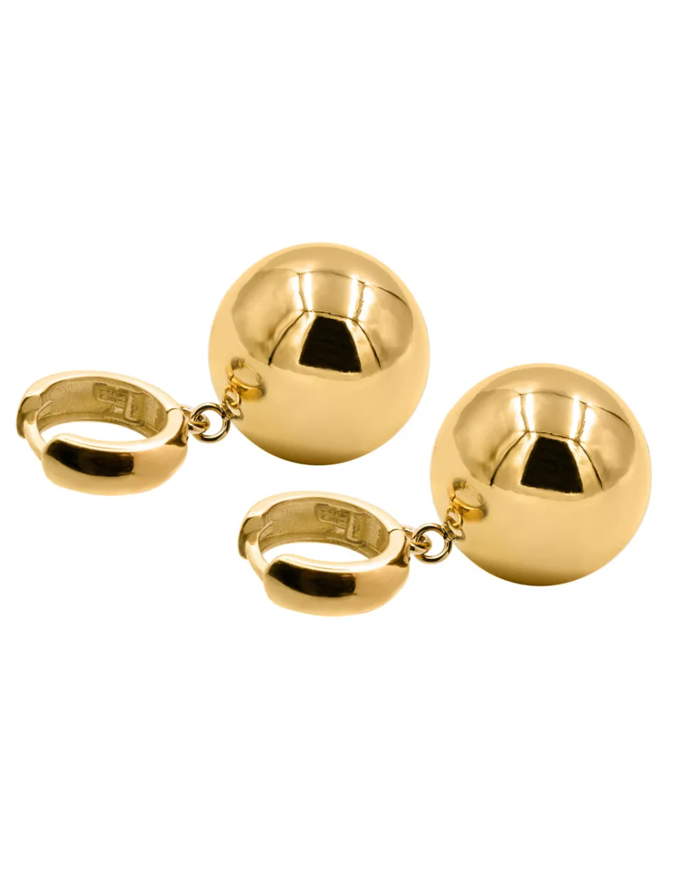 Nowoczesne i ponadczasowe kolczyki z pozłacanego srebra pr.925 oraz dużej stalowej kuli.