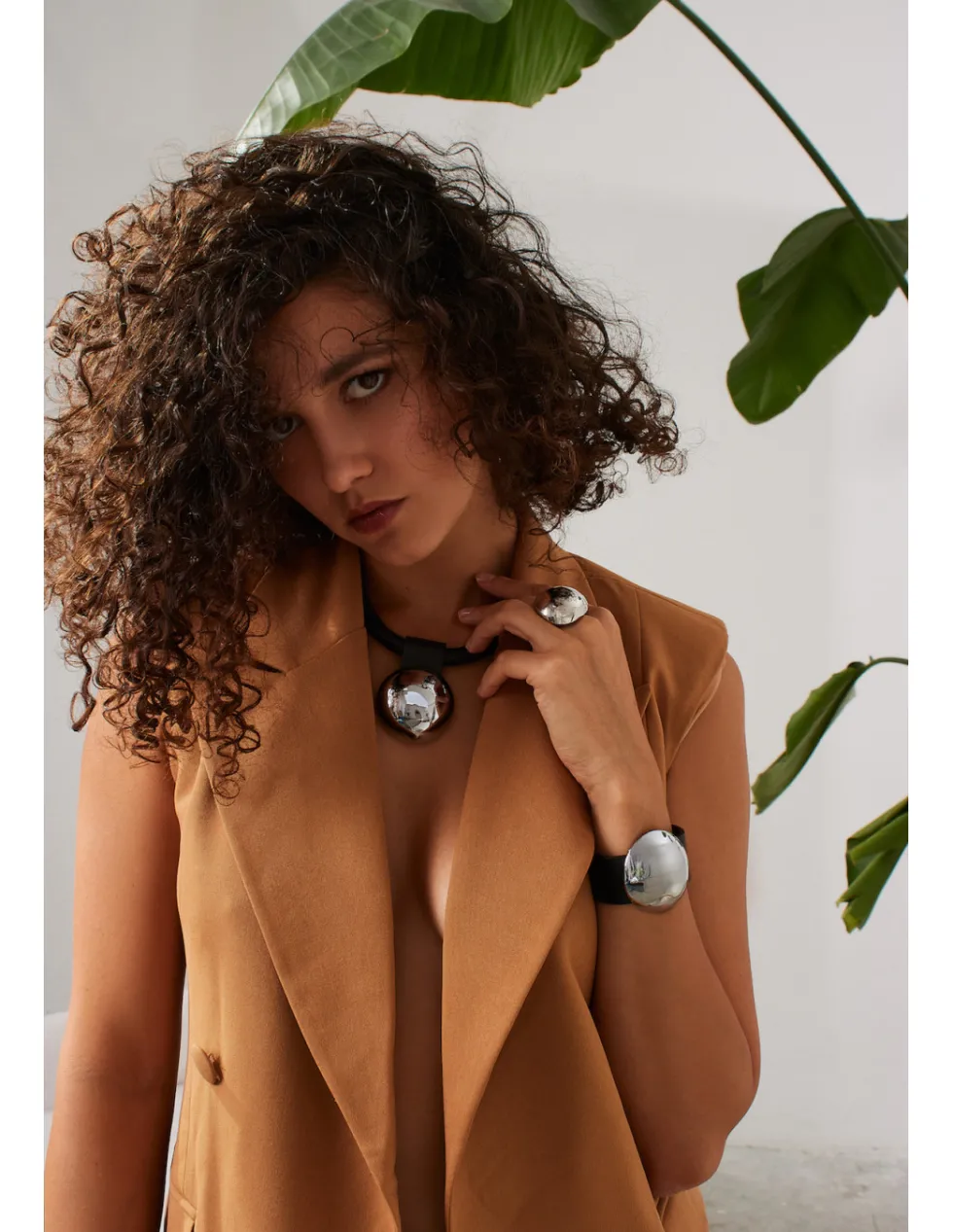Produkt wykonany ręcznie. Bransoleta skórzana z dużą matową kulą ze stali.