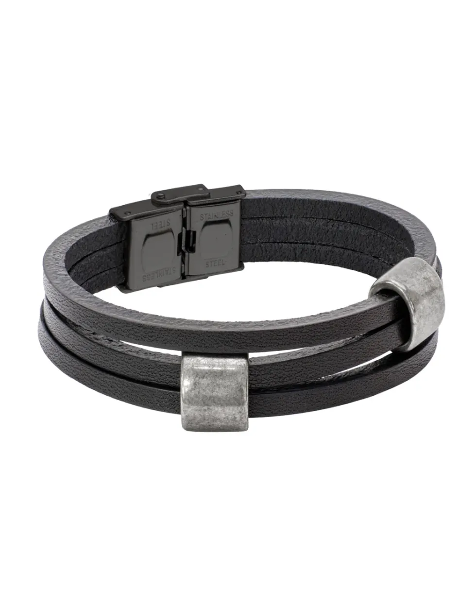 Moora Czarna bransoleta ze skóry z elementami matowymi* Bransolety