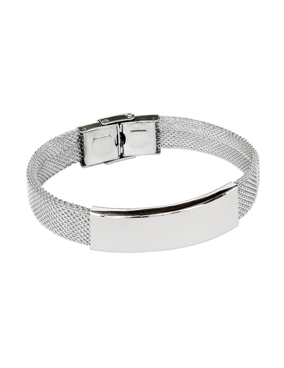 Delikatna bransoleta stalowa z elementem idealnie nadającym się do graweru.