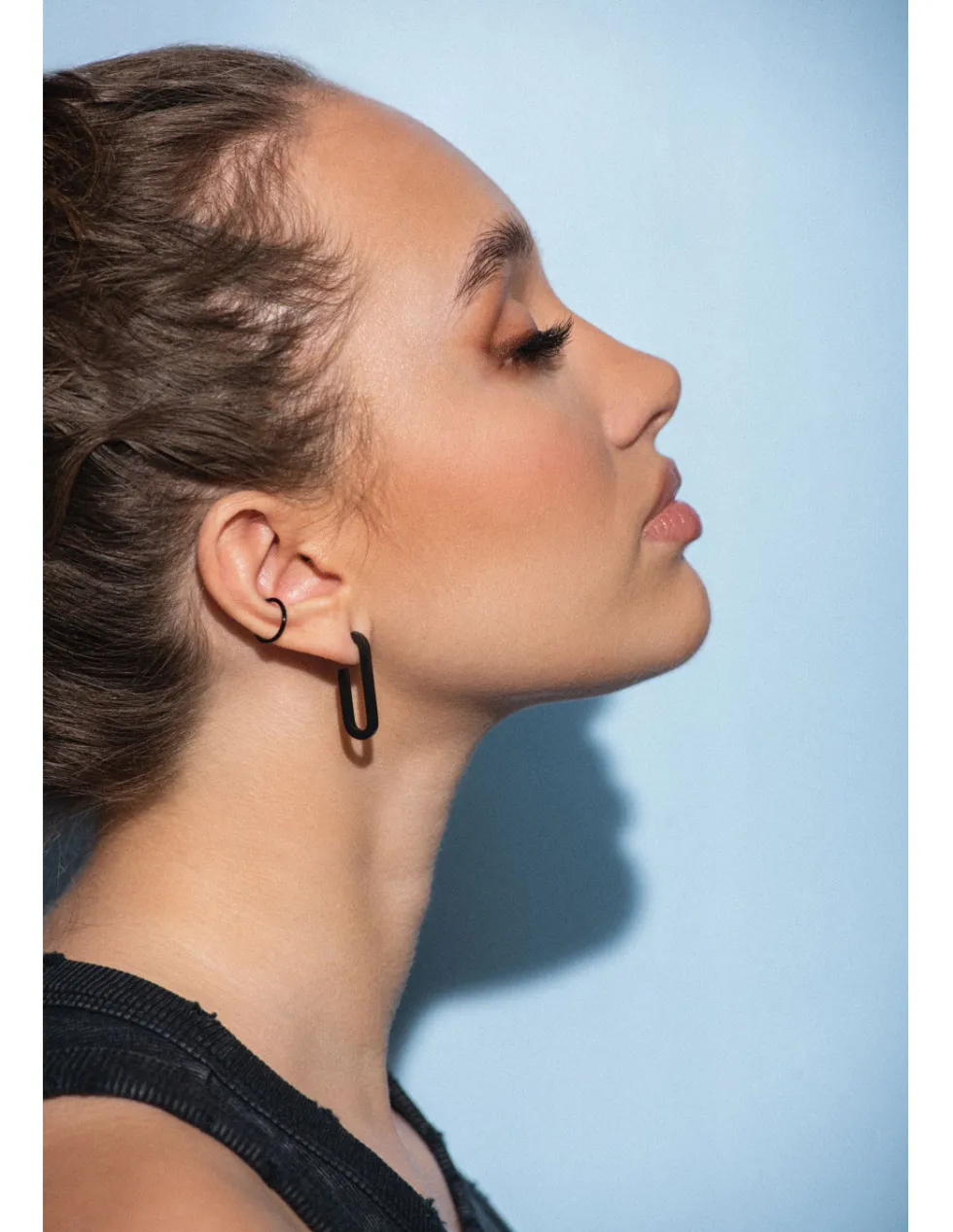 Oryginalna, prosta i nowoczesna nausznica z najwyższej jakości czarnej matowej stali szlachetnej.