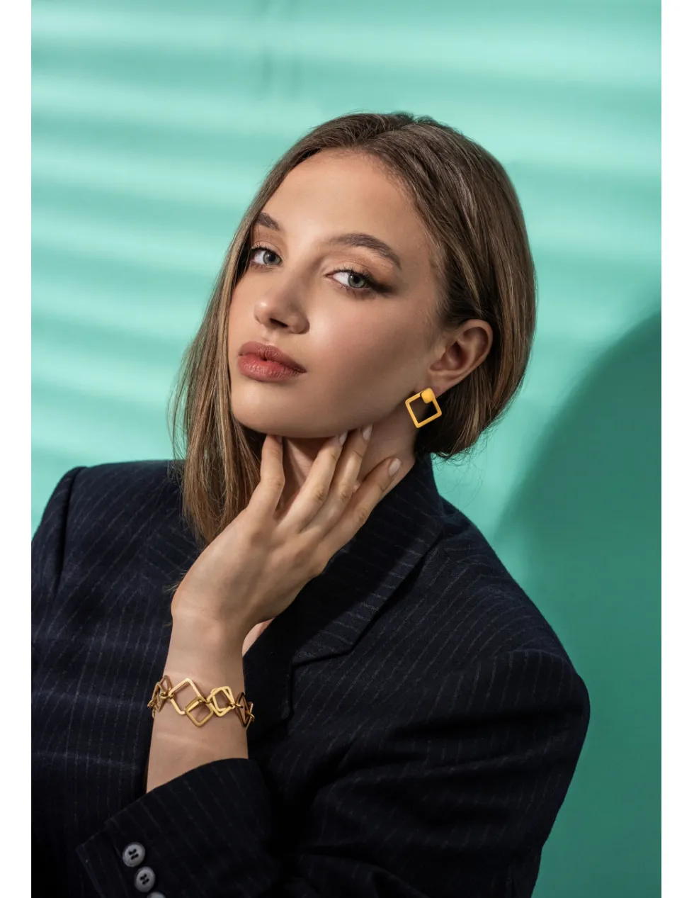 Moora Kolczyki kwadraty 2w1 z pozłacanej stali szlachetnej* Kolczyki