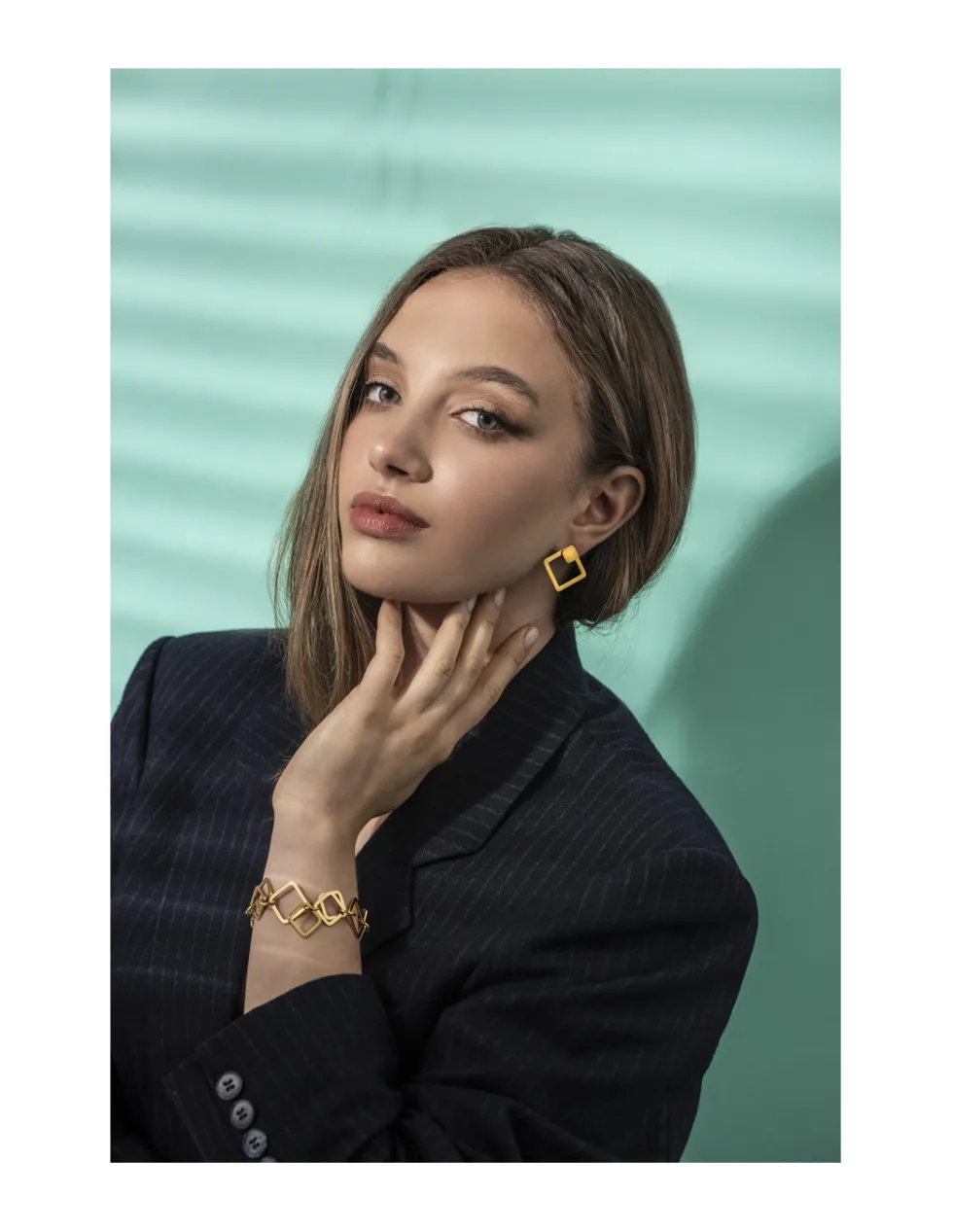 Na zestaw składa się: 4x kwadrat z dziurką – odcień złoty, , 2x kolczyk kwadrat na sztyft – odcień złoty – 7 mm
