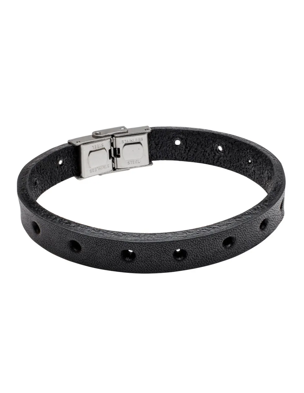 Surowa, prosta bransoleta ze skóry. Zapięcie zegarkowe. DO wyboru kolor czarny lub stalowy.