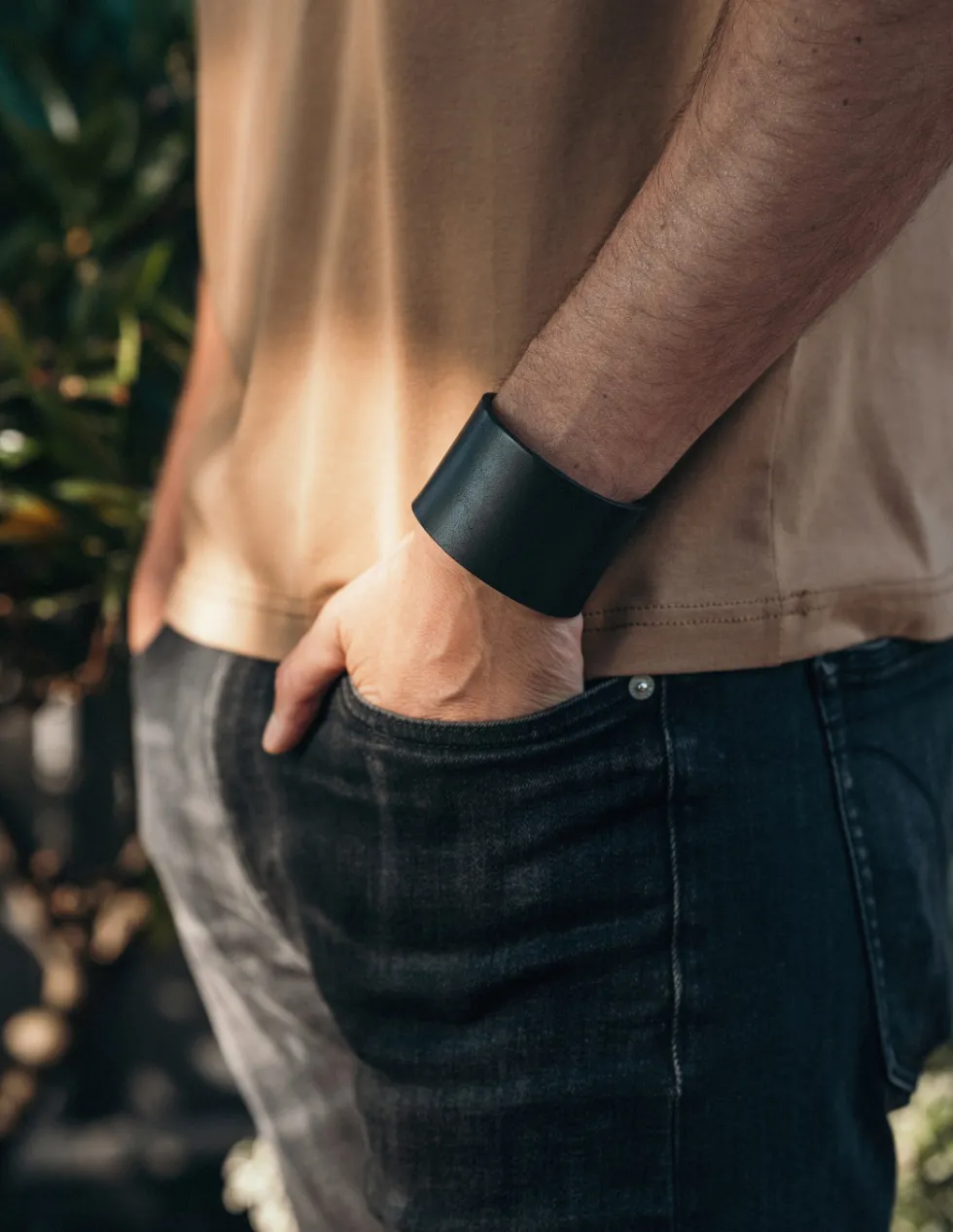 Moora Męska szeroka bransoleta ze skóry oraz stali szlachetnej* Bransoletki