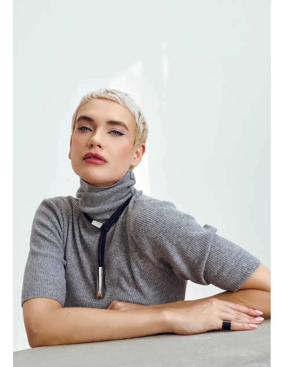 Do każdego naszyjnika dołączamy łącznik skórzany, który można przełożyć przez rzemień w celu utrzymania symetrycznej formy.
