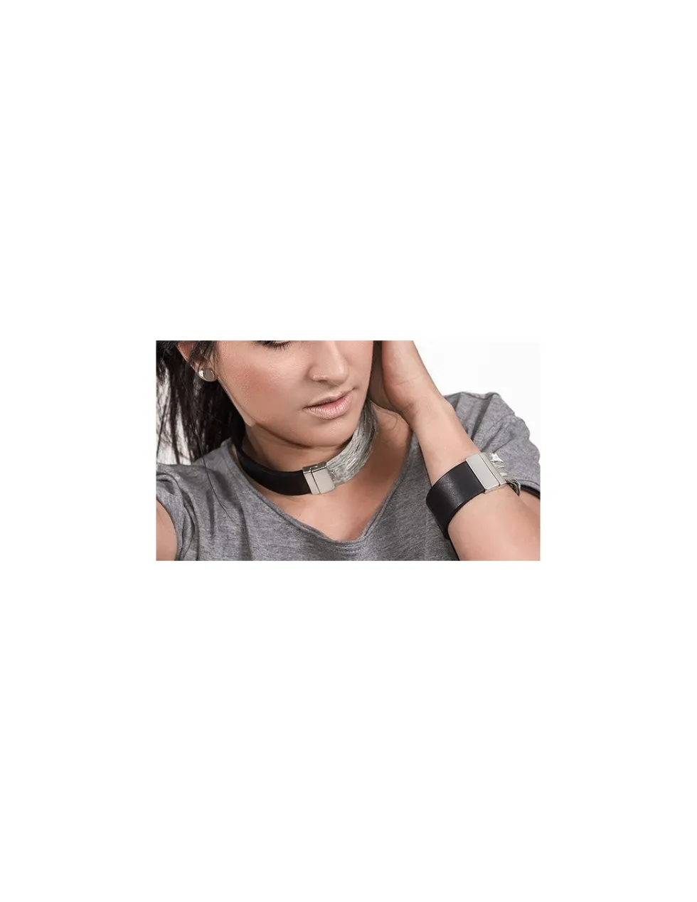 Moora Naszyjnik choker ze skóry oraz stali w formie siatki stalowej* Naszyjniki
