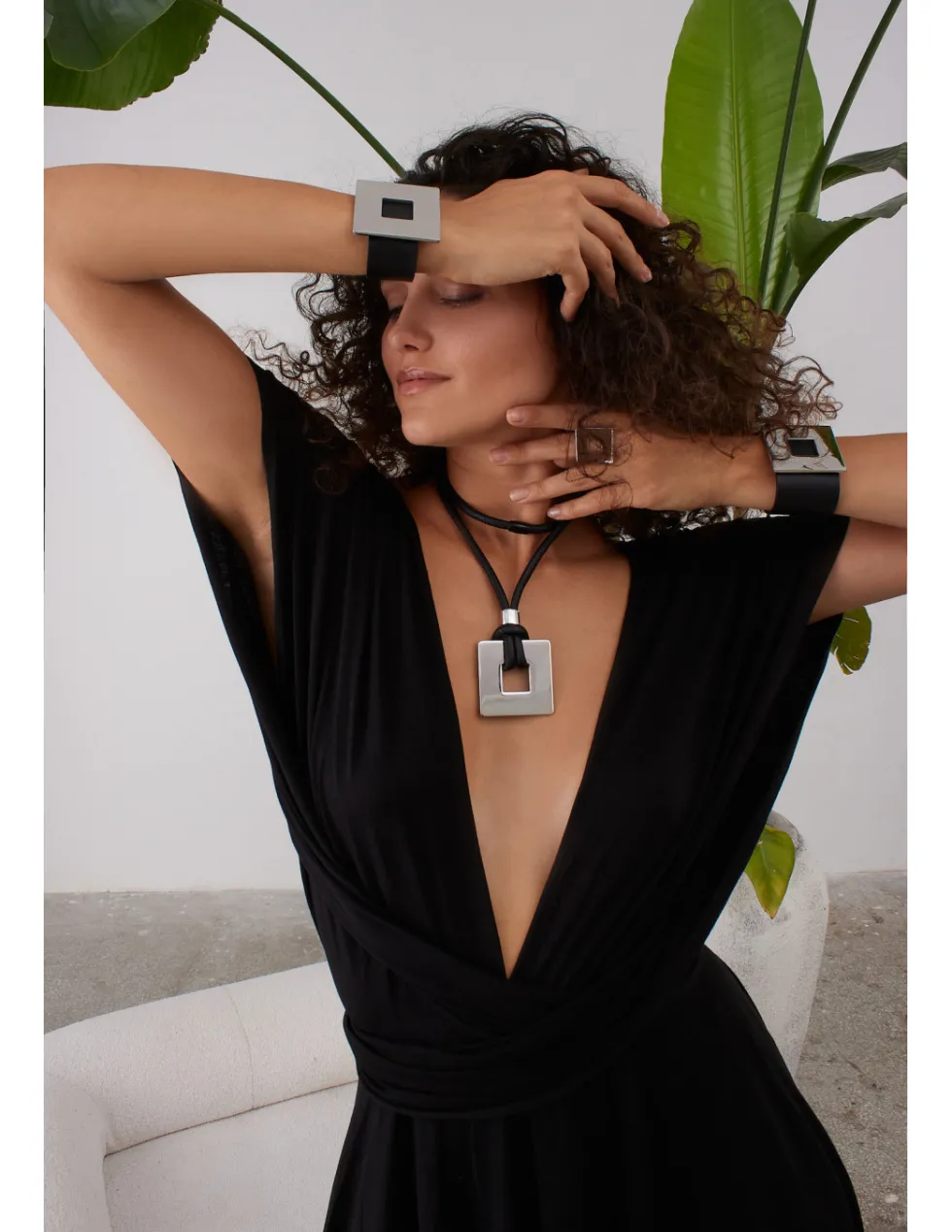 Nowoczesny, prosty i ponadczasowy naszyjnik z miękkiej, ręcznie szytej skóry oraz stali szlachetnej.