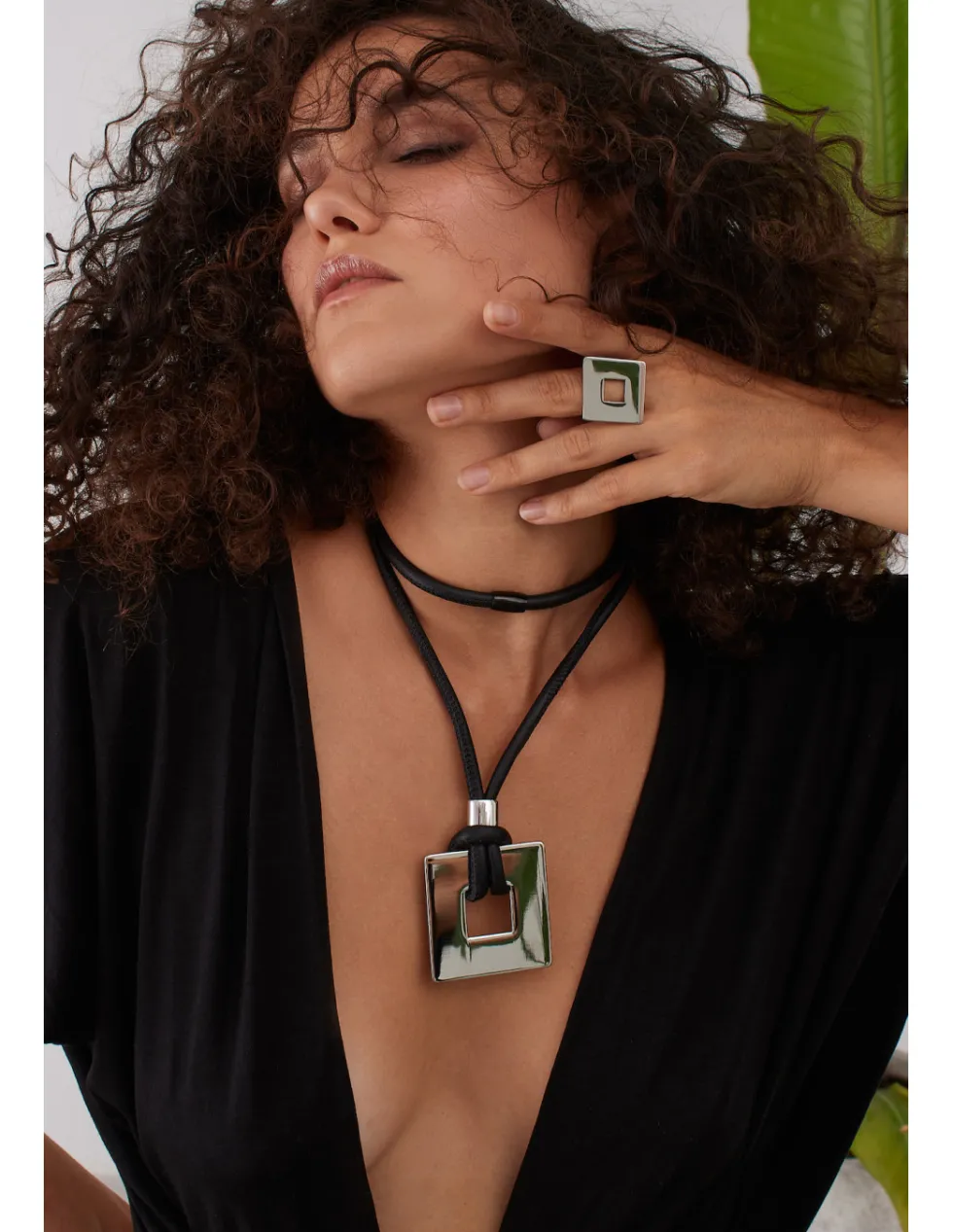 Moora Naszyjnik ze skóry z matową zawieszką w formie kwadratu* Naszyjniki
