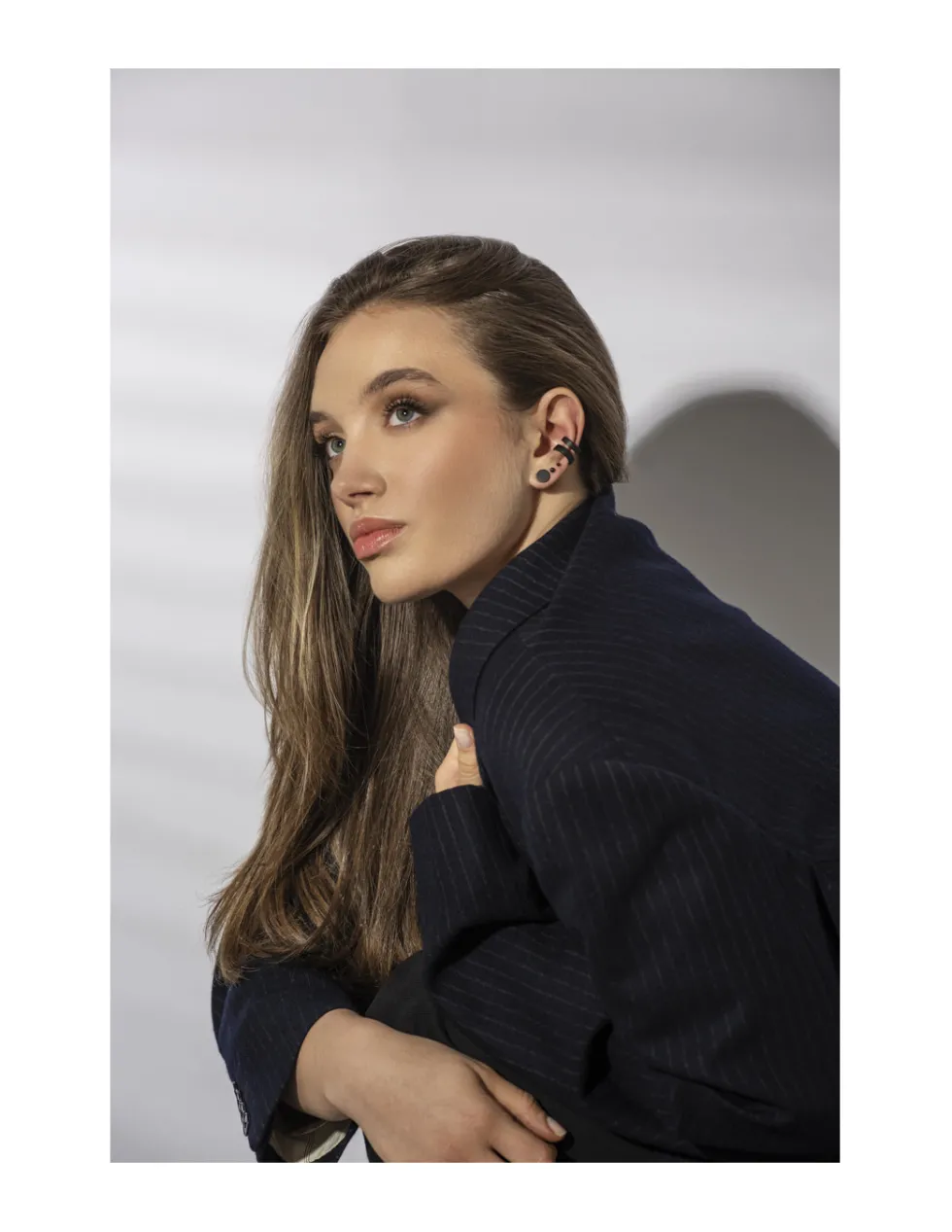 Oryginalna, prosta i nowoczesna nausznica z najwyższej jakości czarnej matowej stali szlachetnej.