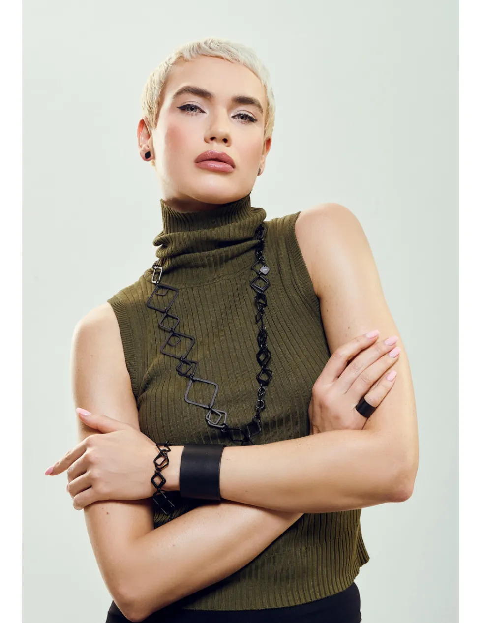 Wyjątkowy w swojej prostocie. Nowoczesny naszyjnik 3d z czarnej matowej stali szlachetnej. Elementy są ruchome. Naszy…