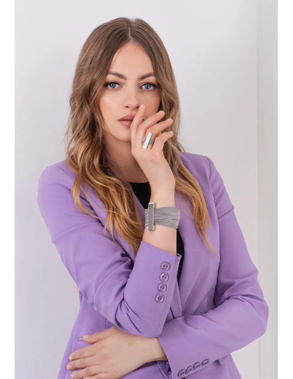 Piękny, prosty i ponadczasowy pierścionek wykonany w ręcznie z najwyższej jakości stali oraz jubilerskiej siatki stalowej.