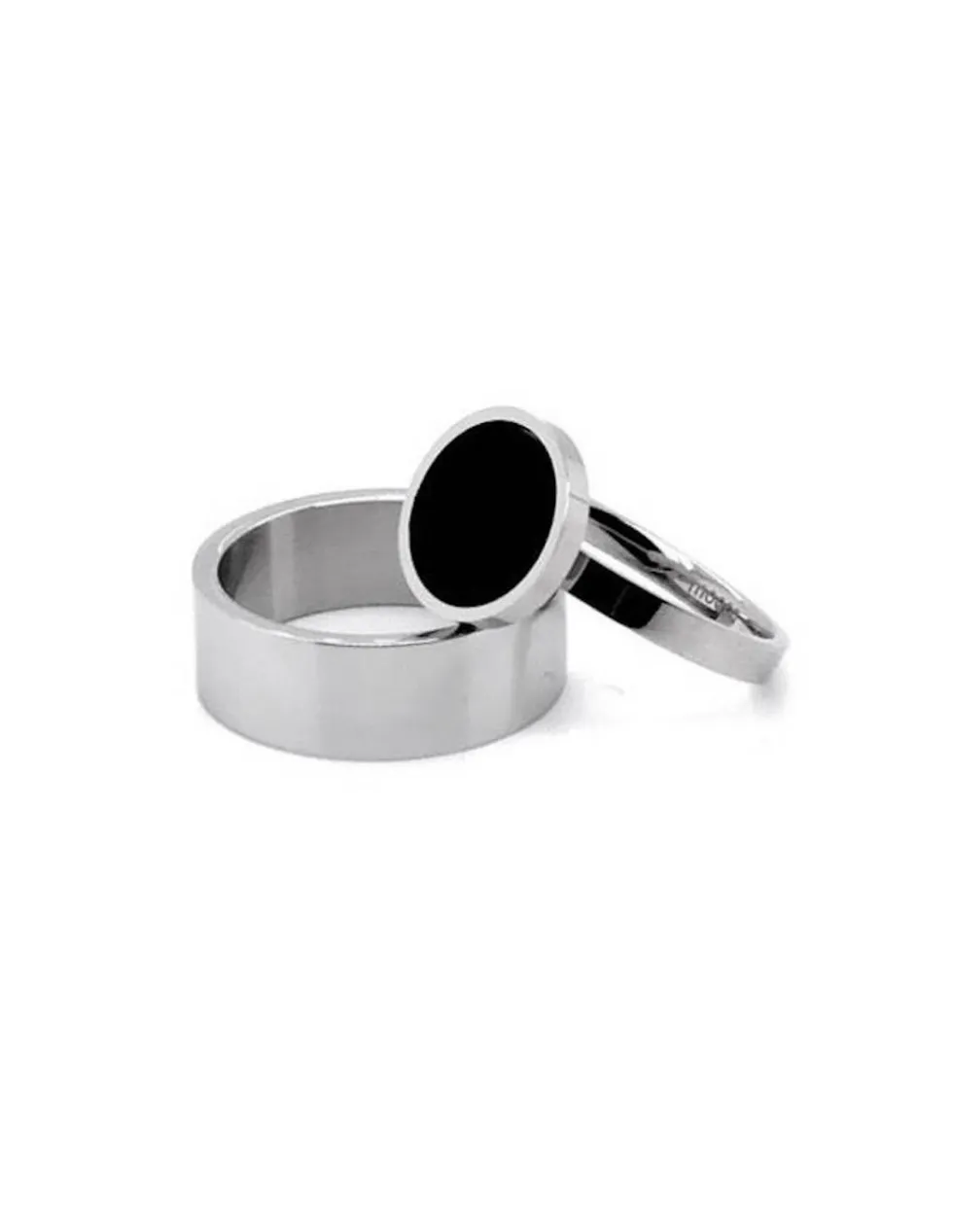Moora Pierścionek 2w1 ze stali szlachetnej. Obrączka oraz pierścionek z czarnym oczkiem.* Pierścionki