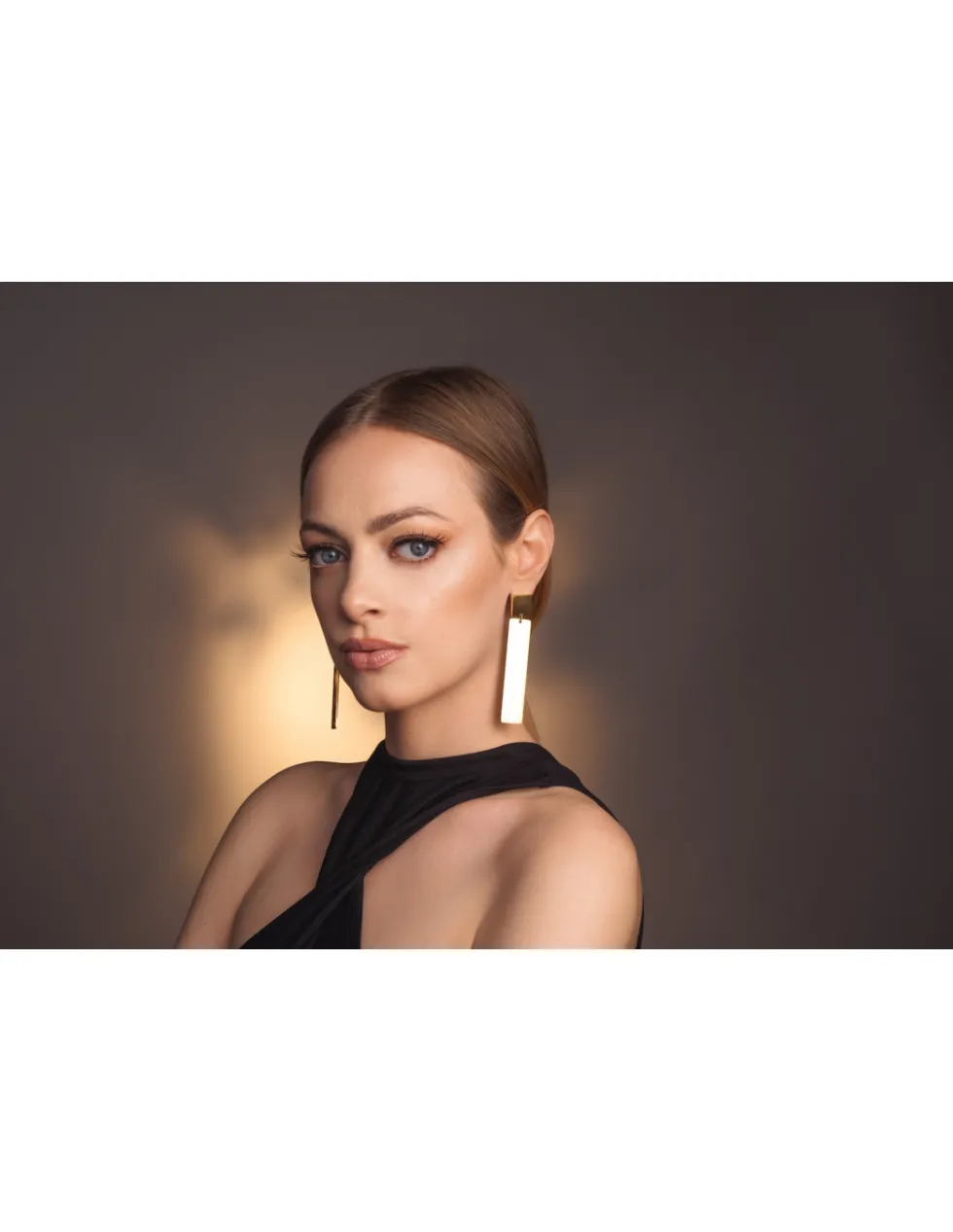 Proste i minimalistyczne kolczyki DWA O RÓŻNEJ DŁUGOŚCI kwadraty ze stali szlachetnej pozłacanej.