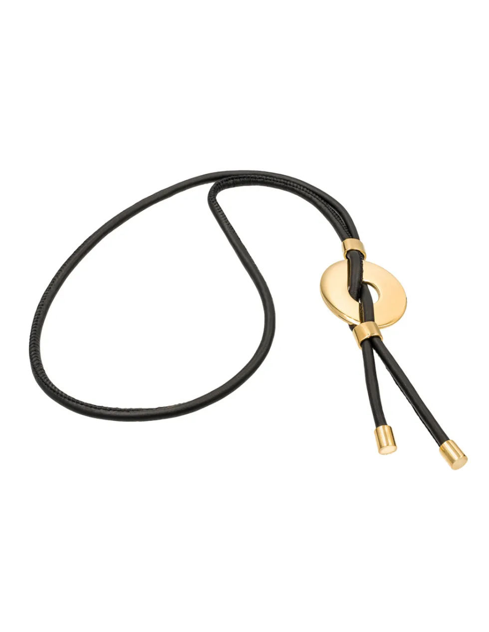 Moora Regulowany naszyjnik skórzany – pozłacane koło* Naszyjniki