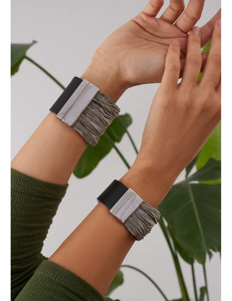 Moora Szeroka bransoleta ze skóry oraz błyszczącej stali* Bransolety