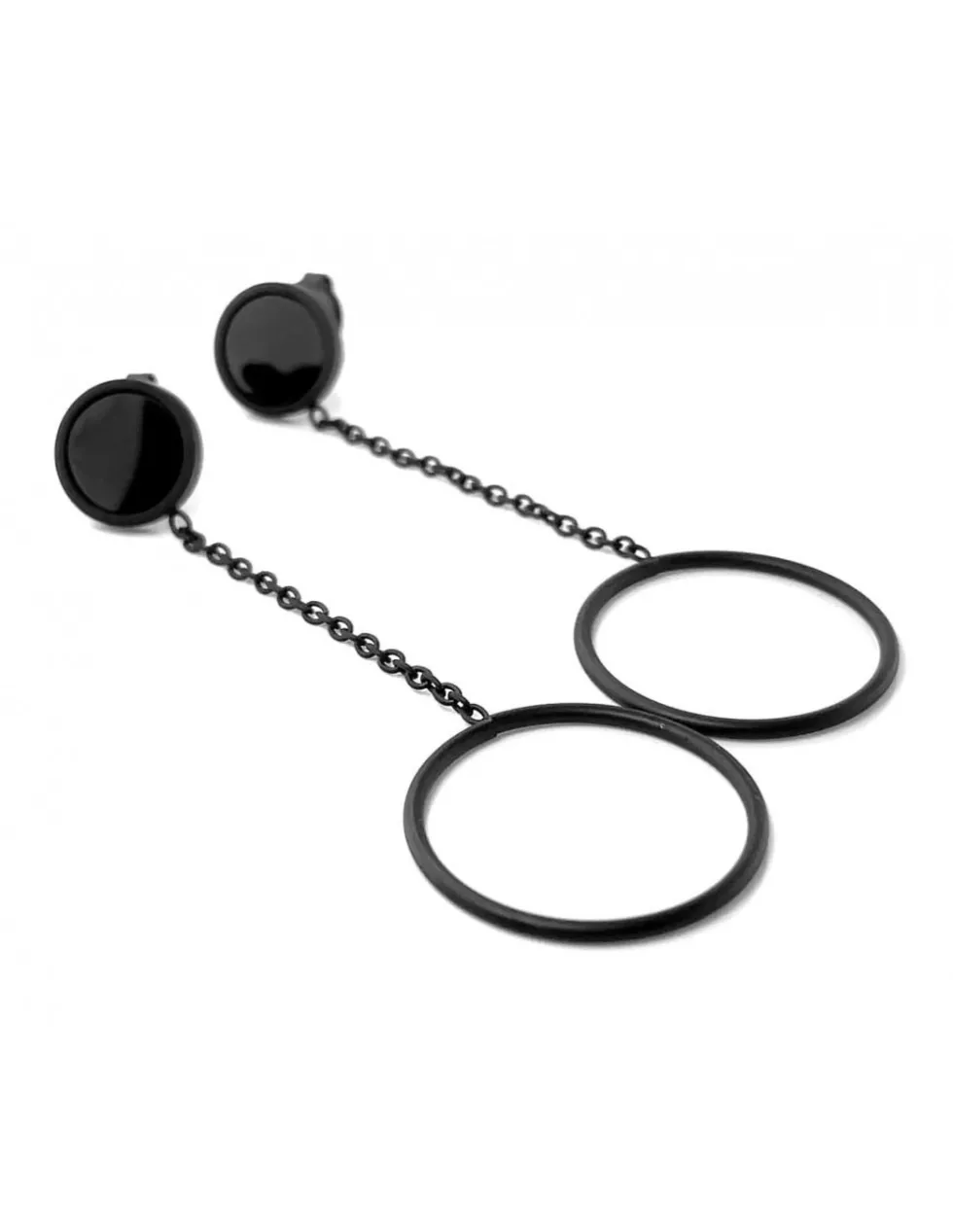 Proste i nowoczesne wiszące kolczyki z czarnej matowej stali szlachetnej.